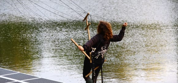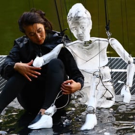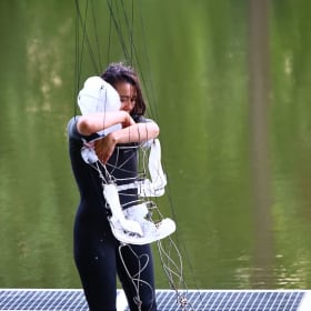 Mizu, which means "water" in Japanese (水), brings together the worlds of circus artist and choreographer Satchie Noro and puppeteer and director Élise Vigneron.