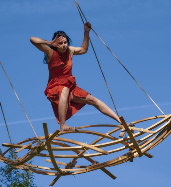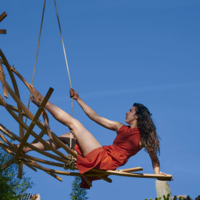 Accompagnée du musicien Fred Costa, cette acrobate aérienne nous convie à l’appropriation de son agrès: