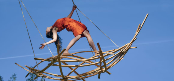Nuage est une installation aérienne pour une danseuse et un musicien, autour de l’imaginaire du nuage.