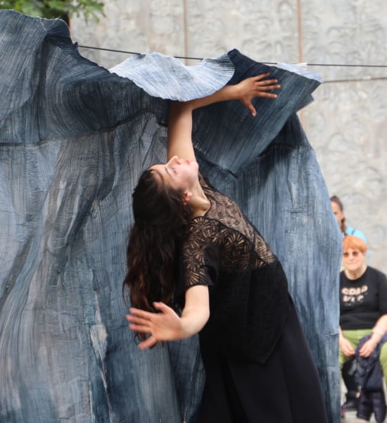 Inspirée de rencontres avec des artisans et des savoir-faire textiles, Satchie Noro initie, en collaboration avec Aurore Thibout une recherche autour de la matière tissée. Dans cette pièce, elle convoque deux danseuses-performeuses sur un terrain d'interférences de tissus et fibres polymorphes, entre tension, dissimulation ou impulsion.