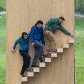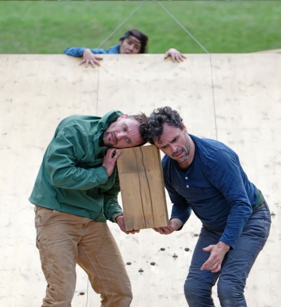 But don't be fooled by its apparent immutability: time is at a standstill and this imposing tower is no exception to the rule. As indeed, the three individuals who have ventured into it are discovering it at their own expense. From landslides to falling objects, they are soon trapped in this architectural space of precarious balance. Here they bend, fall and catch up. The material comes to life and the bodies start dancing again.